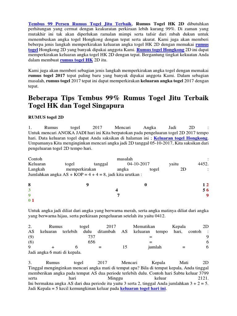 Tembus 99 Persen Rumus Togel Jitu Terbaik TOGELHARIINI GA